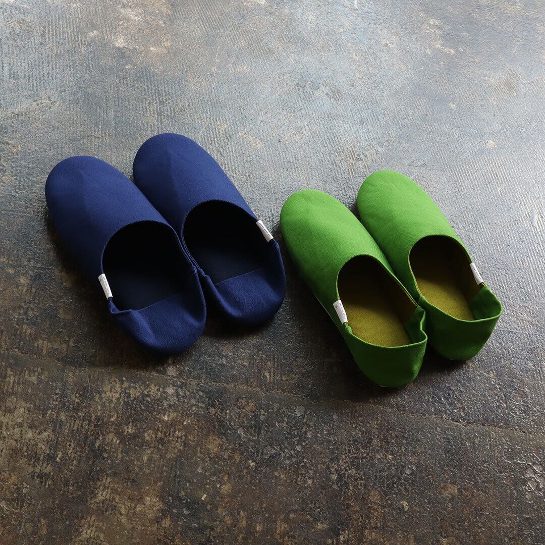 「ABE HOME SHOES」の帆布のバブーシュ。